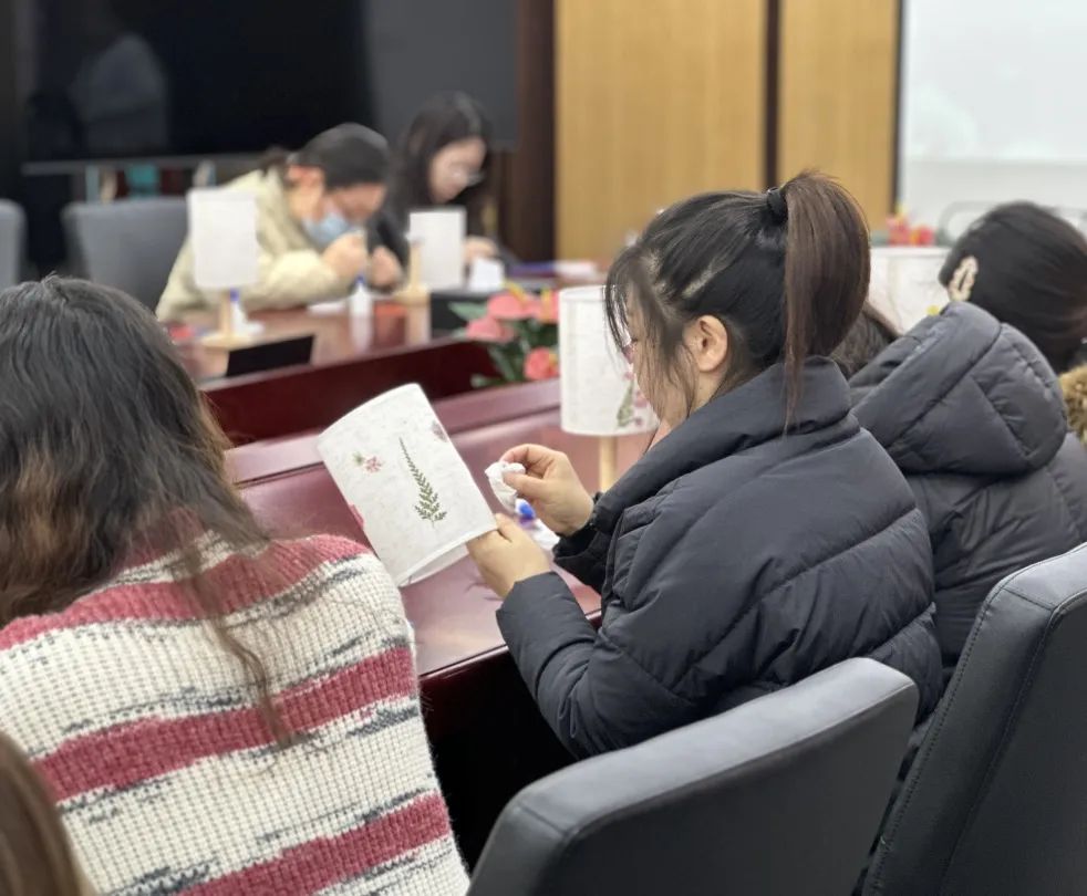 3月7日上午,女職工們紛紛動(dòng)手實(shí)踐。大家充分發(fā)揮自己的創(chuàng)造力和想象力,在燈臺(tái)方寸之間,將原本零散的花材精心組合,變成了一件件獨(dú)具匠心的花藝燈臺(tái)作品。