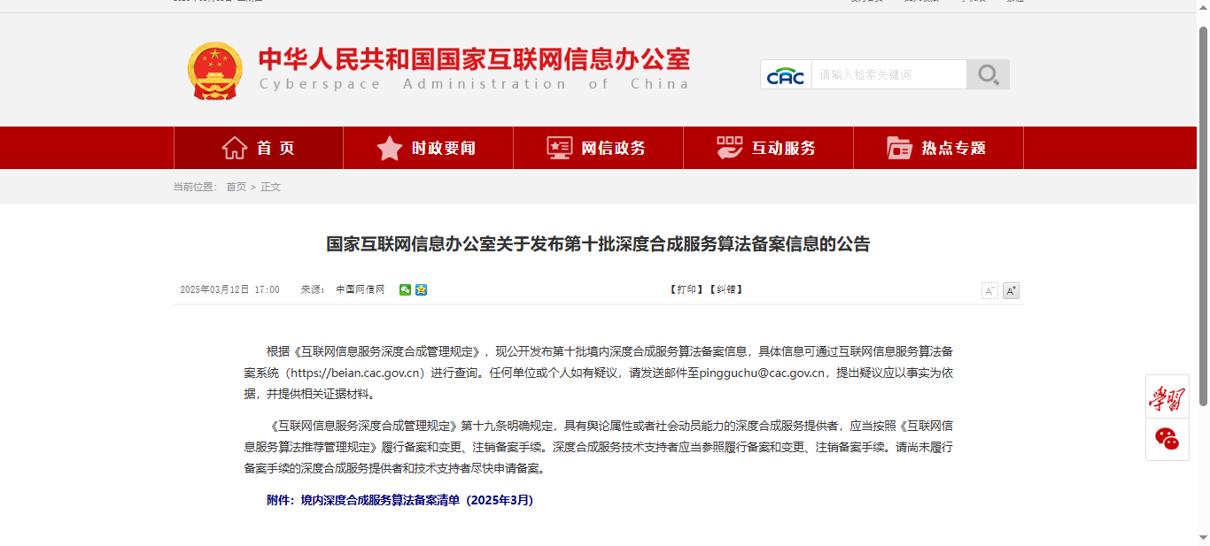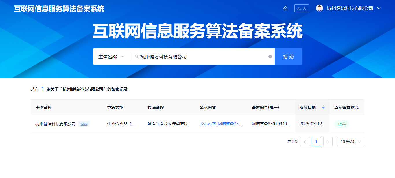 3月12日,國家互聯(lián)網(wǎng)信息辦公室發(fā)布了第十批深度合成服務(wù)算法備案信息的公告,?啄醫(yī)生醫(yī)療大模型榜上有名,這標(biāo)志著我們的核心技術(shù)能力和產(chǎn)品合規(guī)性再次獲得權(quán)威認(rèn)可,持續(xù)推動人工智能技術(shù)在醫(yī)療健康領(lǐng)域的深度應(yīng)用。