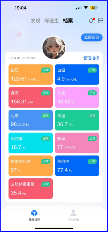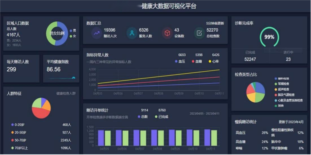 建設(shè)了基于疾病風險評估的健康畫像系統(tǒng),為居民提供精準、個性化的健康服務(wù),實時監(jiān)測患者的健康狀況,記錄并分析患者的各項生理指標,為醫(yī)生制定個性化的治療方案提供數(shù)據(jù)支持。患者可通過移動端隨時查看自己的健康數(shù)據(jù),了解自己的健康狀況,從而更好地參與和管理自己的健康。