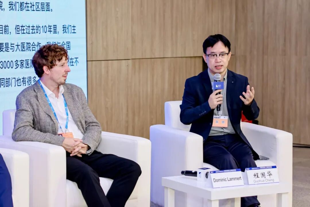 論壇第二部分聚焦“醫(yī)學(xué)人工智能臨床轉(zhuǎn)化”,由伯爾尼大學(xué)人工智能與轉(zhuǎn)化診療實驗室主任施匡宇與同濟(jì)醫(yī)院外事辦公室主任吳珩共同主持。