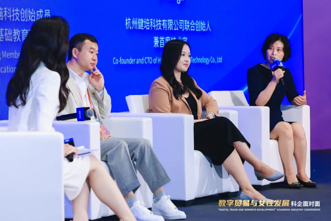 圓桌對(duì)話環(huán)節(jié),圍繞數(shù)字教育、人工智能與家庭服務(wù)、數(shù)字電商、數(shù)字+婦女組織四大板塊,開展了四場(chǎng)科企面對(duì)面對(duì)話交流。其中,人工智能與家庭服務(wù)板塊,對(duì)話聚焦AI在改善家庭生活與服務(wù)中的應(yīng)用前景,展現(xiàn)了AI在養(yǎng)老育幼、特殊兒童關(guān)懷中的科技溫度。西湖大學(xué)工學(xué)院機(jī)械工程講席教授、歐洲科學(xué)與藝術(shù)院院士歐洲科學(xué)院院士姜漢卿教授;全國(guó)三八紅旗手、全國(guó)杰出創(chuàng)業(yè)女性、全國(guó)巾幗建功標(biāo)兵、浙江省政協(xié)委員、杭州市婦聯(lián)執(zhí)委、杭州市女知識(shí)分子聯(lián)誼會(huì)會(huì)長(zhǎng)、健培科技聯(lián)合創(chuàng)始人季紅麗;BrainCo強(qiáng)腦科技創(chuàng)始成員、集團(tuán)副總裁、基礎(chǔ)教育研究院院長(zhǎng)張勝男進(jìn)行了對(duì)話交流。