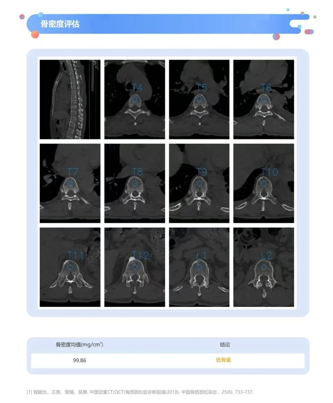 2025 年版《成人健康體檢項(xiàng)目推薦指引》明確:40 歲以上人群常規(guī)體檢新增骨密度檢測項(xiàng)目,體脂率、肌肉脂肪分布情況也納入檢查,且定量 CT(QCT)被列為骨密度檢測優(yōu)先推薦。 健培啄醫(yī)生胸部CT一檢多篩無需額外掃描,依托常規(guī) CT 影像即可完成骨密度檢測,實(shí)現(xiàn) “篩 - 診 - 評(píng)” 一體化,為 40 + 人群骨健康管理及骨質(zhì)疏松等慢性病風(fēng)險(xiǎn)評(píng)估,提供高效、精準(zhǔn)的技術(shù)支持,助力落實(shí)科學(xué)健康篩查。