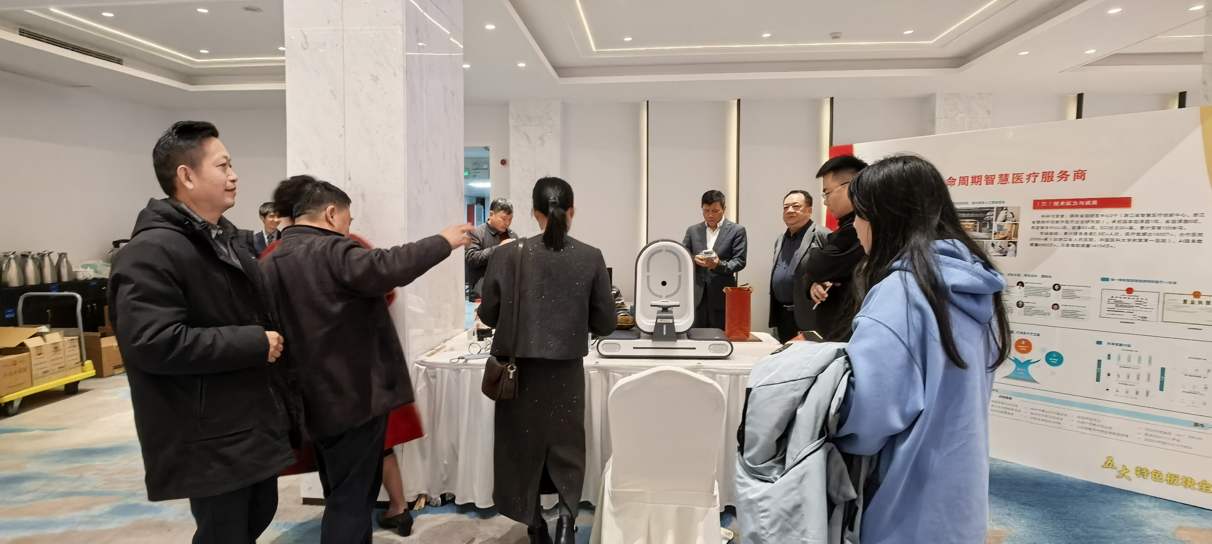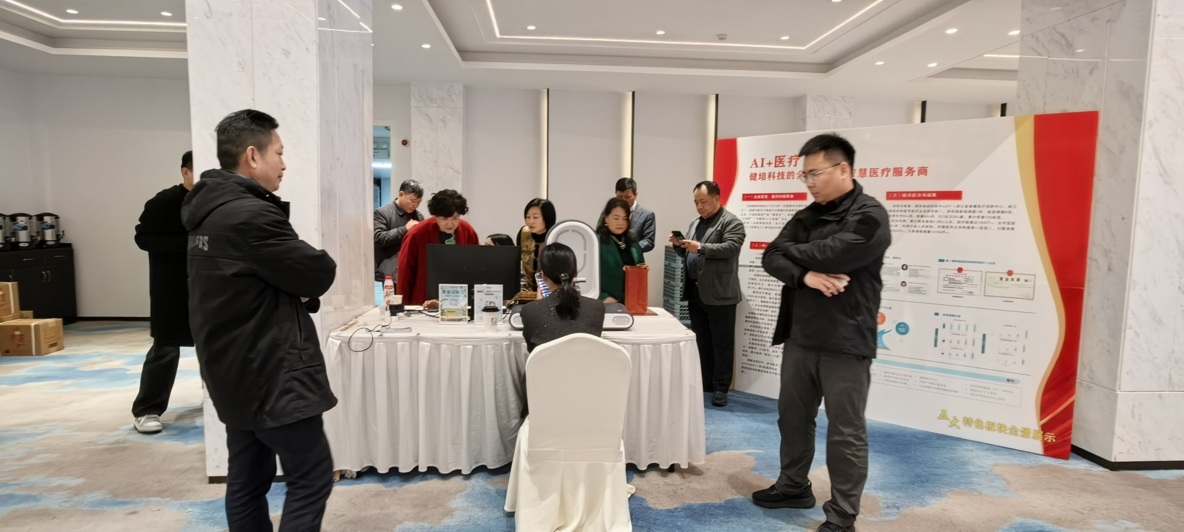 在醫(yī)療+AI展位上,啄醫(yī)生APP+穿戴設(shè)備軟硬一體化,線上線下一體化的創(chuàng)新方式吸引了很多人前來(lái)圍觀和體驗(yàn),對(duì)中西結(jié)合的產(chǎn)品贊不絕口。希望通過(guò)本次大會(huì)為契機(jī),與各界朋友攜手并肩,讓AI賦能健康行業(yè)新質(zhì)生產(chǎn)力發(fā)展,共創(chuàng)更加輝煌的明天!