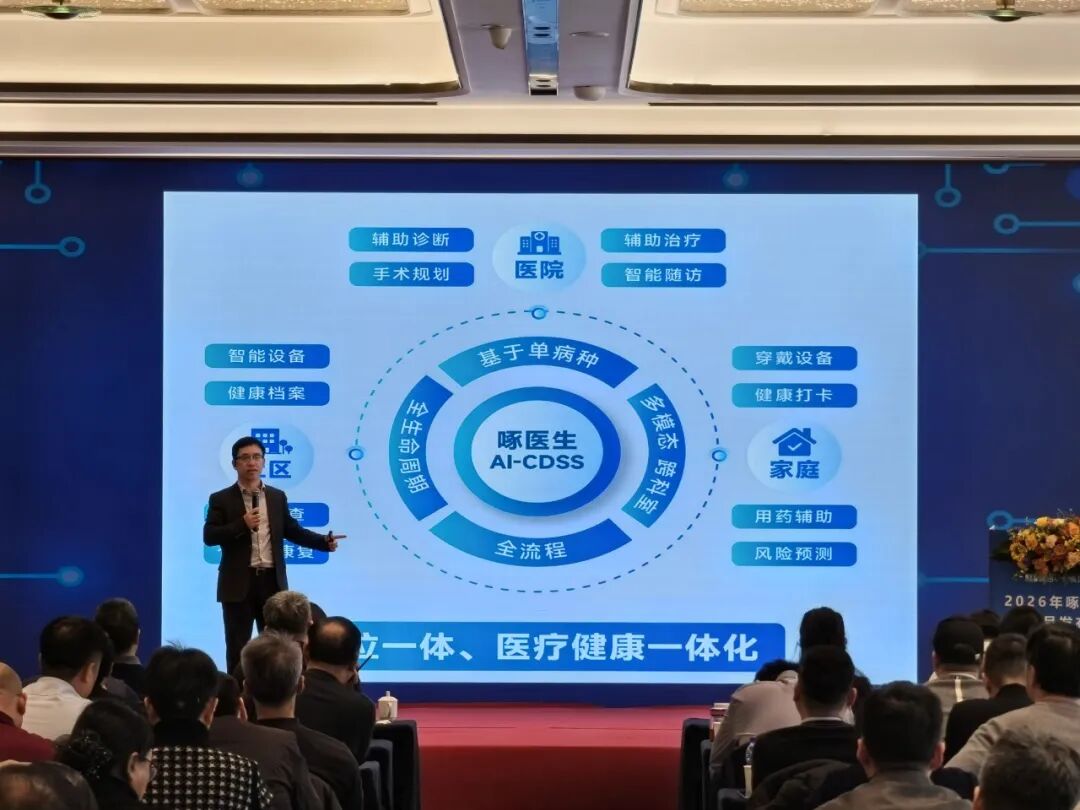 1月23日,健培科技2026年啄醫(yī)生新產(chǎn)品發(fā)布會在杭州成功舉行。蕭山區(qū)數(shù)據(jù)資源管理局副局長李志平,浙江大學(xué)醫(yī)學(xué)院附屬邵逸夫醫(yī)院肝膽胰外科/科研辦主任徐俊杰,溫州醫(yī)科大學(xué)附屬眼視光醫(yī)院副院長陳蔚,以及來自全國各地的300余位核心經(jīng)銷商共同參加會議。會議聚焦智能體技術(shù)發(fā)展新趨勢,深入解讀啄醫(yī)生產(chǎn)品的技術(shù)優(yōu)勢與應(yīng)用前景,以及醫(yī)療人工智能領(lǐng)域的戰(zhàn)略布局與市場規(guī)劃。通過現(xiàn)場演示與交流,全面展示了政府端、醫(yī)院端、社區(qū)端、家庭端等醫(yī)療健康一體化的智慧醫(yī)健體系。大會由健培科技副總裁徐招海主持。