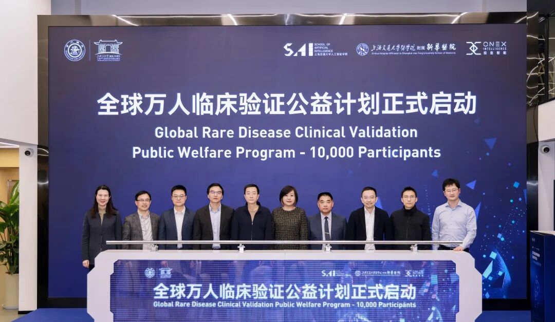 會上,“全球萬人臨床驗證公益計劃” 正式啟動,攜手全球同仁編織罕見病智能診斷網(wǎng)。上海市衛(wèi)生健康委員會二級巡視員吳宏、上海國有資本投資有限公司副總裁陸雯、上海交通大學醫(yī)學院附屬上海兒童醫(yī)學中心黨委書記周慧芳、上海交通大學醫(yī)學院附屬新華醫(yī)院科研處處長余永國、上??萍即髮W生物醫(yī)學工程學院創(chuàng)始院長\聯(lián)影智能聯(lián)席CEO沈定剛,杭州健培科技股份有限公司董事長程國華等10位嘉賓共同舉行了啟動儀式。共同見證醫(yī)學 AI 賦能罕見病診療里程碑時刻!